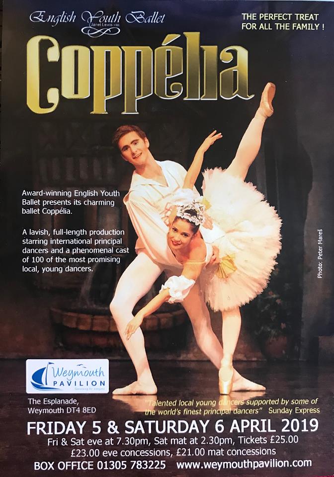 We happened to mention that we own a guest house, and she happened to mention she needed accommodation for a few weeks. A match made in heaven. Five weeks later and our principal dancers and fifty youngsters from the Weymouth area prepared to perform Coppelia. What an evening! We were so proud to see Ollie, Samantha and Monica on stage, with Steven playing the villain. I was mesmerised by the girls en pointe, so elegant and graceful. After weeks of feeding them a hearty breakfast before each rehearsal it felt like we had played a part in their success!